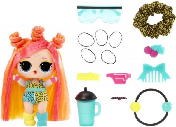 Enrich children’s play with the L.O.L. Surprise! Hair Doll, which brings incredible surprises and fun with every unboxing. In the box, which can also serve as a hair salon, you’ll find fantastic styling accessories. Each doll has unique colorful hair and can change color during bath time, whether in warm or cold water.