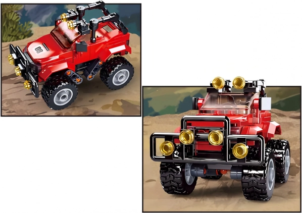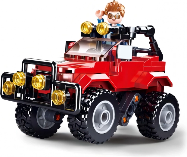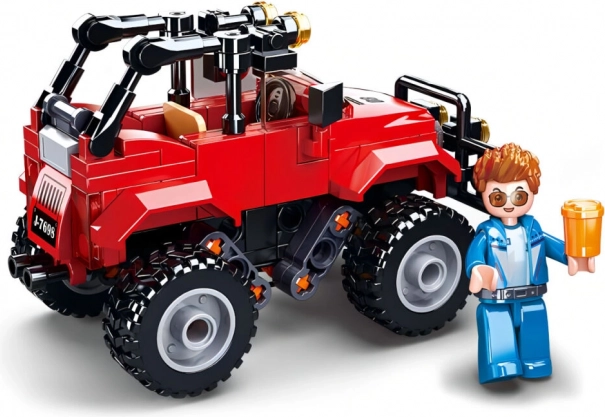 Head off-road with the Sluban Town Red Jeep building set. High-quality, non-toxic, and durable ABS plastic, robust wheels, and realistic details (lights, roof rack) make it a great model for both younger and older builders. The easy difficulty will please beginners and motivate them to take on new challenges.