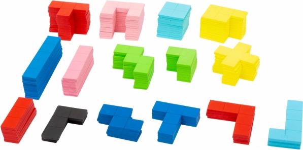 Arranging the shapes promotes spatial thinking, hand–eye coordination, and recognition of colors and shapes.