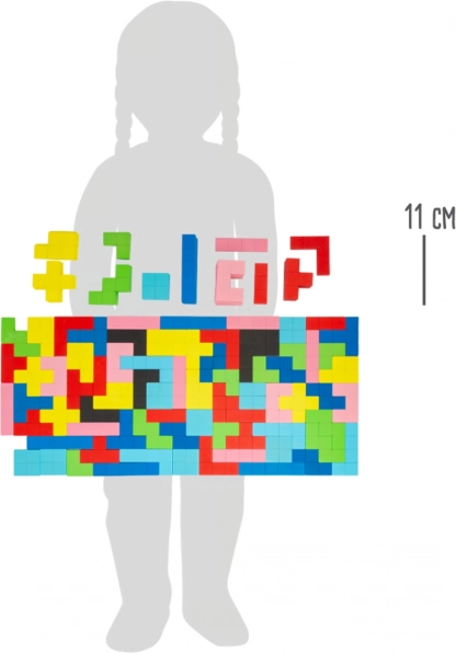 This educational toy develops logic, fine motor skills, and creative expression. The practical packaging in the form of a cardboard suitcase allows you to easily tidy up the mosaic and take it on trips or to preschool.