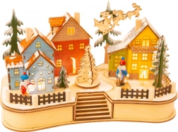 Colorful houses made of finely carved wood create a cozy ambient light that brightens the evening mood and highlights your Christmas decor.