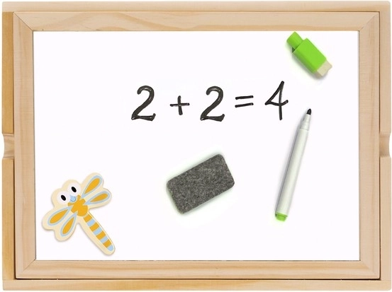 The board offers two variable surfaces - white for writing with a marker and black for drawing with chalk, allowing for different ways of creative play.