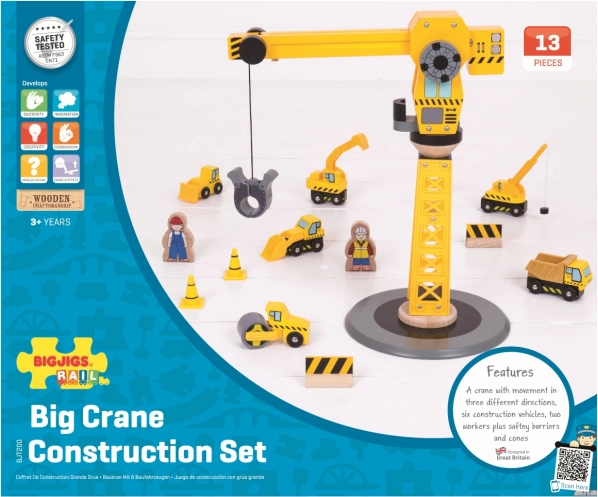 This high-quality wooden construction set with a rotating crane and magnetic hook offers children endless play possibilities. Thanks to its robust build and safe materials, it’s ideal for everyday play and skill development. The bright yellow design of the construction vehicles will instantly attract kids.