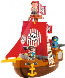 Dive into the world of pirates with this amazing plastic pirate ship, perfect for the smallest adventurers. The ship comes with colorful sails adorned with skull motifs and hides many play possibilities. With pirate figures and a parrot, it offers countless scenarios for creative play.