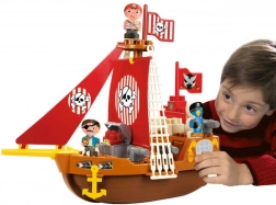 The ship is equipped with detailed components like red sails with a skull and crossbones motif, providing children with an authentic pirate experience.