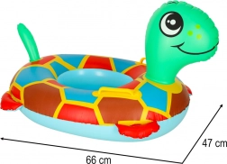 The inflatable turtle seat is a great helper for those first water adventures. Thanks to the two leg openings, the child sits stably, while the colorful design and smiling turtle head invite play. Durable PVC ensures long life and easy maintenance.