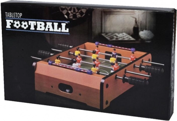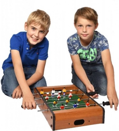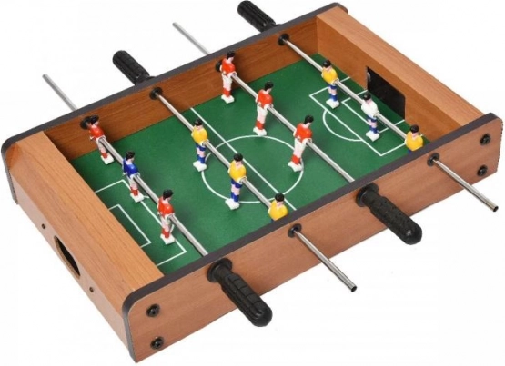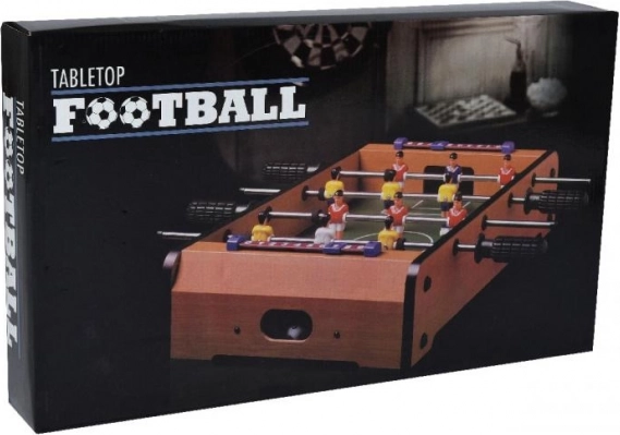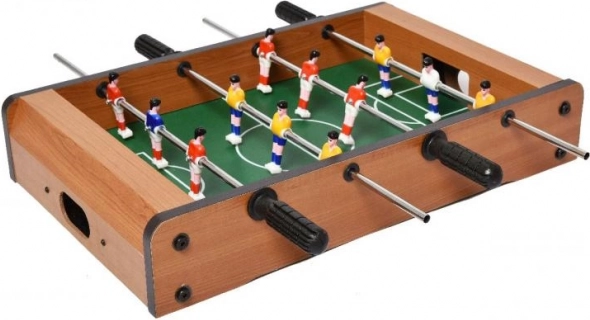 This smaller table football is an ideal choice for all football fans who want to have fun at home. It is built from colorful, lacquered wood, ensuring long-lasting durability. Each team has 6 footballers placed on two rods, allowing easy control and a simulation of a real football match.