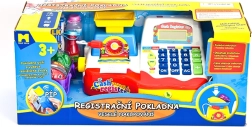 A popular cash register toy with a sliding cash drawer, functional buttons, microphone, scale, basket, and a range of pretend food items for little shopkeepers. Battery-powered. Suitable for children aged 3 and up.