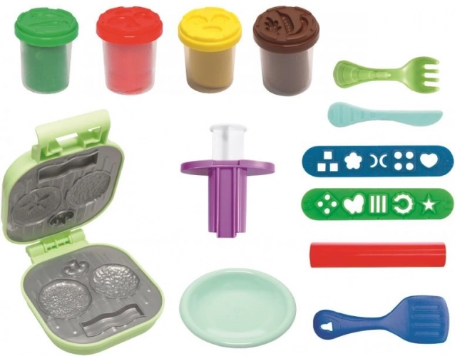 - 4 packs of modeling clay, each weighing 56g, ideal for shaping different parts of the hamburger.