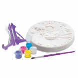 Terracotta disc with relief, 6 acrylic paints, brush, stand