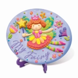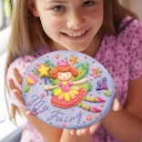 The set includes a terracotta disc with a fairy relief, 6 paints, a brush, and a stand. Open and create—no extra supplies needed.