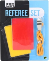 This compact referee set provides everything you need for quick, clear communication on the field. The metal whistle with lanyard delivers a loud, clear signal, while the yellow and red cards enable clear, immediate decisions during play.