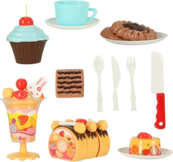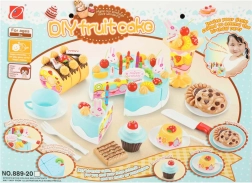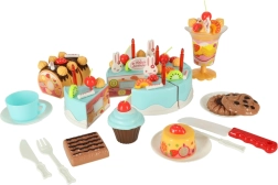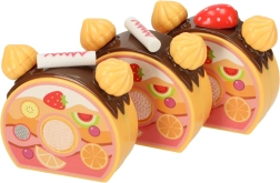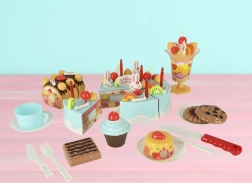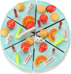 Playing with the cake supports learning colors and shapes, develops communication and cooperation during shared serving. Thanks to its compact dimensions, the set is great for travel. An excellent gift for little pastry chefs.