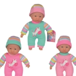 Tyny Laura Doll with Pacifier is an ideal toy for little girls who love playing pretend as moms. With her pink dress and bonnet, she looks like a real baby.