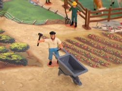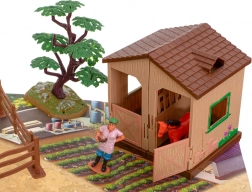 Unfold the mat, set up the stable, pens, and tree. Kids get a clear and inspiring environment for play and learning about country life.