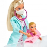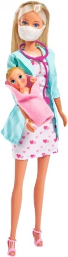 Steffi Doll as a pediatrician offers great fun for children. Equipped with a mask and stethoscope, it comes with a baby and accessories for a caregiving role in a medical setting.