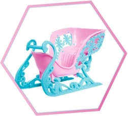 Pink, decorated sleigh with snowflake motifs add atmosphere to every winter story.