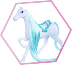 A white horse with a long turquoise mane and elegant posture is the heart of this set's winter fantasy.