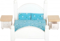 Details like a working doorbell, sliding doors, opening windows, and a bedside table with drawers add realism and interactivity to play. Furniture with wooden and plastic elements is included, enhancing the authentic play experience.
