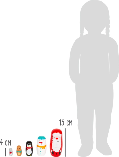 Thanks to solid wood and durable paints, the figures are ideal for repeated nesting. Attractive Christmas motifs and bright colors delight both children and adults, bringing a warm holiday mood to any interior.