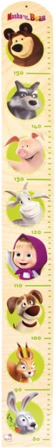 The wooden growth chart in a natural color with prints of cute animals and heroes from the fairy tale MASHA AND THE BEAR turns measuring height into a fun daily ritual. Thanks to the printed centimeter scale, you can easily track every centimeter of growth from 80 to 160 cm.