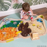 Invites children to playful exploration and development of fine motor skills.