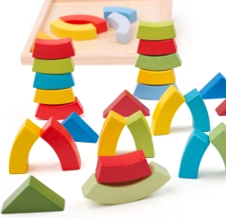 The BIGJIGS TOYS wooden arches and triangles are ideal for free play. Children can stack, build, and experiment with shapes and balance, naturally developing imagination and logical thinking. The practical wooden base makes storage and carrying easy.