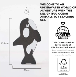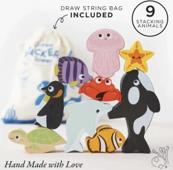 This high-quality wooden ocean-themed stacker provides children from 18 months with hours of safe and creative play. Pieces shaped like a whale, dolphin, starfish, penguin, sea turtle, jellyfish, and other ocean friends are designed to be easy for little hands to hold, supporting hand–eye coordination, patience, and imagination.