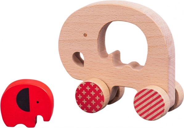 This elegantly rounded, wheeled elephant with a removable baby elephant figure is a great choice for a first toy. Thanks to safe materials and quality craftsmanship, it brings joy and peace of mind to parents—FSC-certified wood, water-based paints, and recycled cardboard packaging are gentle on kids and the planet.