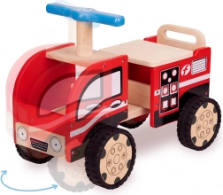 This wooden ride-on is an ideal companion for all young fire truck fans. Easy to steer and featuring a pair of storage spaces, it provides not only fun but practical use for storing toys or plushies. Thanks to its bright colors, it becomes an excellent addition to any child's room.