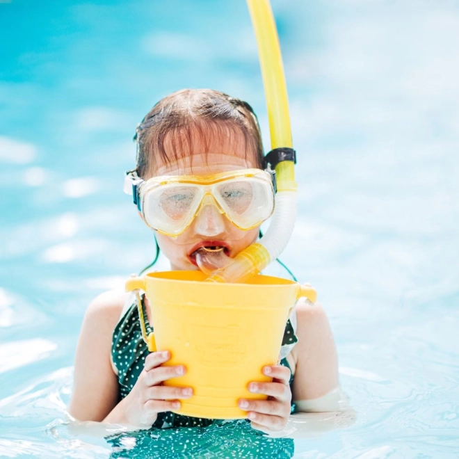 The yellow BIGJIGS TOYS silicone beach bucket is lightweight, flexible and packable for little explorers. Made from food-grade silicone, it is resistant to crushing, easy to clean, and suitable from 12 months for the beach, garden, and water play.