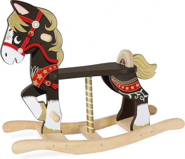 Treat children to timeless joy with the wooden rocking horse from the Petilou collection. The robust construction, smooth edges, support handles, and comfortable saddle ensure safety and comfort while riding. The elegant decor with brown and gold accents will adorn any nursery.
