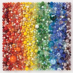 Smooth color gradients of glass marbles promote focus and visual discrimination – ideal for unwinding after a busy day.
