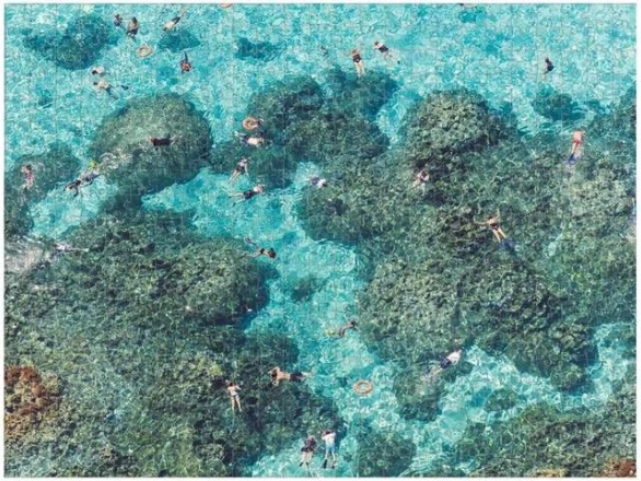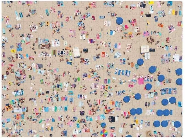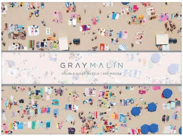 Stylish double-sided puzzle inspired by the iconic aerial photography of Gray Malin brings an engaging challenge and a decorative finish. One side captures a lively beach from a bird’s-eye view, the other a calm ocean surface with rocky outcrops and swimmers. Thanks to the different surface finishes (gloss/matte), you’ll easily recognize which side you’re working on.