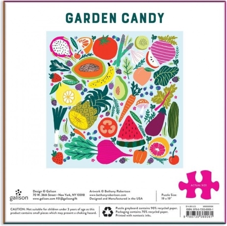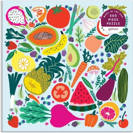Enjoy a relaxing time with the beautiful GALISON Sweet Garden puzzle with 500 pieces. An illustrated collage of colorful fruit and vegetables will delight both children and adults. Pieces made from recycled paper fit together precisely, the print uses non-toxic inks, and the sturdy matte box ensures long-lasting durability. Premium quality for enjoyable puzzling and the development of logical thinking and fine motor skills.