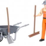 Includes a figure with movable limbs, traffic signs, cones, and tools for realistic play scenarios.