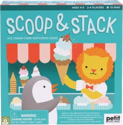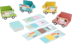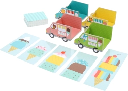It includes 52 illustrated cards and 4 ice cream trucks that serve as holders for collected cards. Your task is to create the tallest ice cream cone consisting of various cone cards, scoops, and decorations. Thanks to non-toxic inks and FSC certification, the game is environmentally friendly.