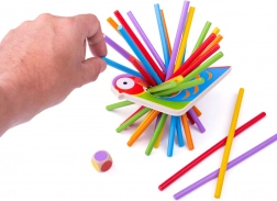 The game helps children develop fine motor skills, eye-hand coordination precisely through stacking and balancing sticks.