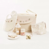 Caring for dolls and soft toys has never been so fun and inspiring. Le Toy Van care set offers complete equipment for little caregivers. Includes a textile changing bag with a decorative pattern, pacifier, bib, diaper, plate, spoon, puree, and bottle. Each piece is made with sustainability and quality in mind to last through many hours of play.