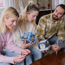 Turn gift-giving into an unforgettable experience. The ESCAPEWELT mystery box is a stylish assembly kit that you lock with a three-digit code and accompany with a series of logical clues across four cards. With colorful stickers, symbols, and directional hints, you can set both the difficulty and the mood of the riddle.