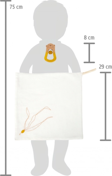 • Cotton cloth with a loop for easy attachment to a rattle or stroller.
