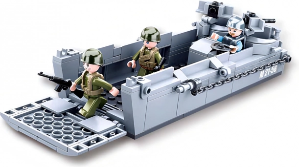 The Sluban Army WWII Landing Craft is a detailed construction set for builders young and old. With realistic elements, a functional ramp, and a set of accessories, you can easily create authentic military scenes. Thanks to durable ABS plastic, the model withstands intensive play and repeated assembly.