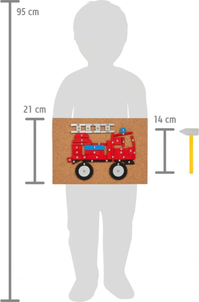 With this classic hammering game in modern colors, children can create pictures of vehicles and construction machines based on six pictorial templates or their own imagination. Main features: