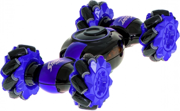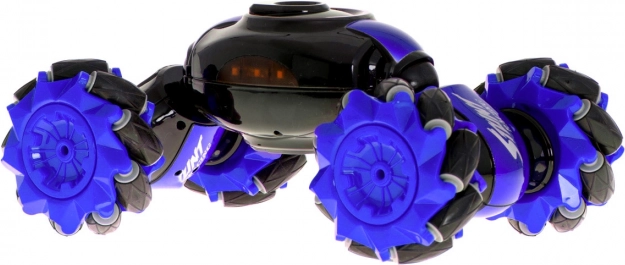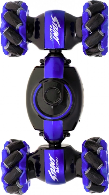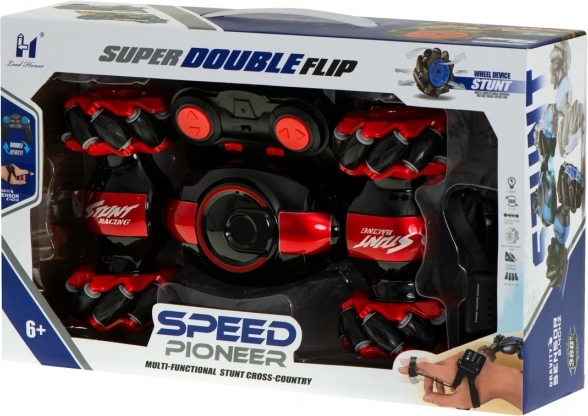 Experience the adrenaline with the SPEED PIONEER 360 stunt RC car in blue. With two controllers – a classic joystick and a wristband with a gravity sensor – you can steer using gestures. The car is double-sided, performs 360° spins, features 2 driving modes (racing and off-road), omnidirectional wheels, and a range of up to 20 m on a 2.4 GHz frequency.