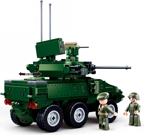 The detailed 6x6 armored vehicle with a rotating turret and authentic elements ensures great looks and playability.