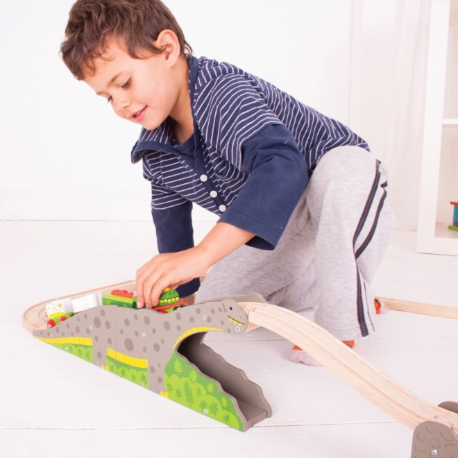 Accessory for wooden railway – dinosaur bridge/tunnel