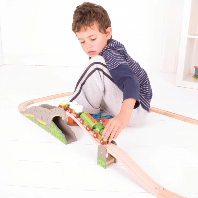 Add a unique element to children’s railways – a dinosaur bridge that turns every ride into an adventure. The robust wooden construction with a dinosaur theme lets trains travel over the back and through the tunnel, increasing track variety and encouraging creative play.