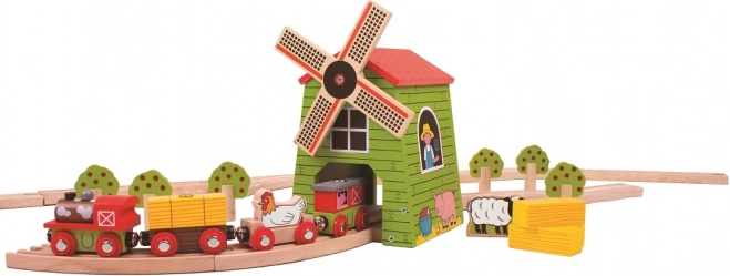 The Bigjigs Rail wooden windmill turns any play layout into a stylish farm-themed corner. Children can drive through the tunnel and spin the blades—fun that naturally supports hand–eye coordination and creative storytelling. The robust wooden build and vibrant colors invite play again and again.