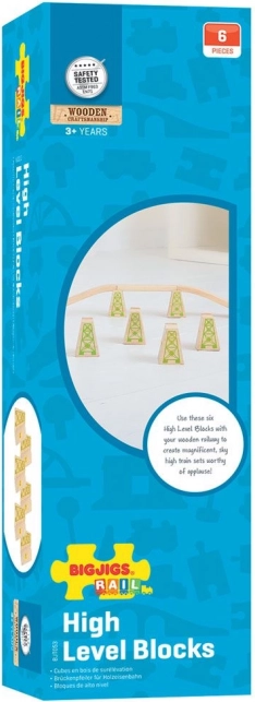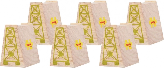 Expand your railway with sturdy wooden bridge piers to easily build multi-level tracks and fantastic bridges. The piers are compatible with most wooden railways on the market, made from high-quality, responsibly sourced wood, and meet European safety standards. The set includes 6 pieces for creative building.