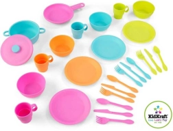 Discover the fun of a play kitchen with this colorful 27-piece KIDKRAFT BRIGHT dishware set. The set is made of high-quality plastic, is easy to clean, and meets EN71 safety standards. An ideal accessory for all play kitchens for children aged 3+.